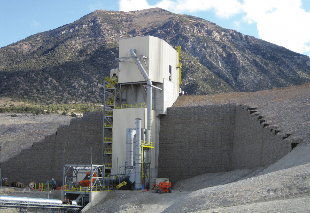 A new primary crusher unit was being added to the Cortez Hills Mine in Crescent Valley, NV. The terrain at the optimum location for the new crusher was extremely challenging, so a retaining wall was needed to create a safe area for unloading mine trucks. The retaining wall also provided stabilized access to the crusher. The wall needed to support the live load of the Liebherr T282 B Mine Trucks used at the mine’s location, which can generate a loaded weight of 653 Tons.