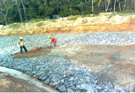 A Bridge was planned to be constructed across the Chakkai canal connecting NH bypass with the new international airport in Trivandrum. The approach ramp for the bridge was to be constructed using reinforced soil (RS) wall concept. The foundation soil was found to have inadequate bearing capacity to bear the load of the RS walls. Soil investigation reports revealed that the subsurface soil primarily consisted of clay upto 3m depth followed by sand with silt upto 4.5m and with traces of clay as deep as 9m. Ground water table was also encountered near the ground owing to the proximity of the Chakkai canal.